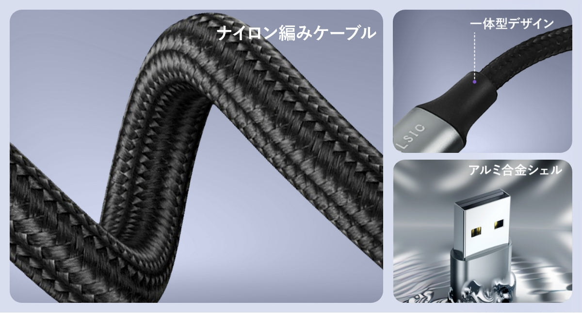【優れた耐久性】約20,000回の屈曲試験に合格した頑丈な設計。プラグ部分にはアルミ合金シェルと高耐久ABS素材を使用し、長期間にわたり高級感を損なうことなく使えます。
