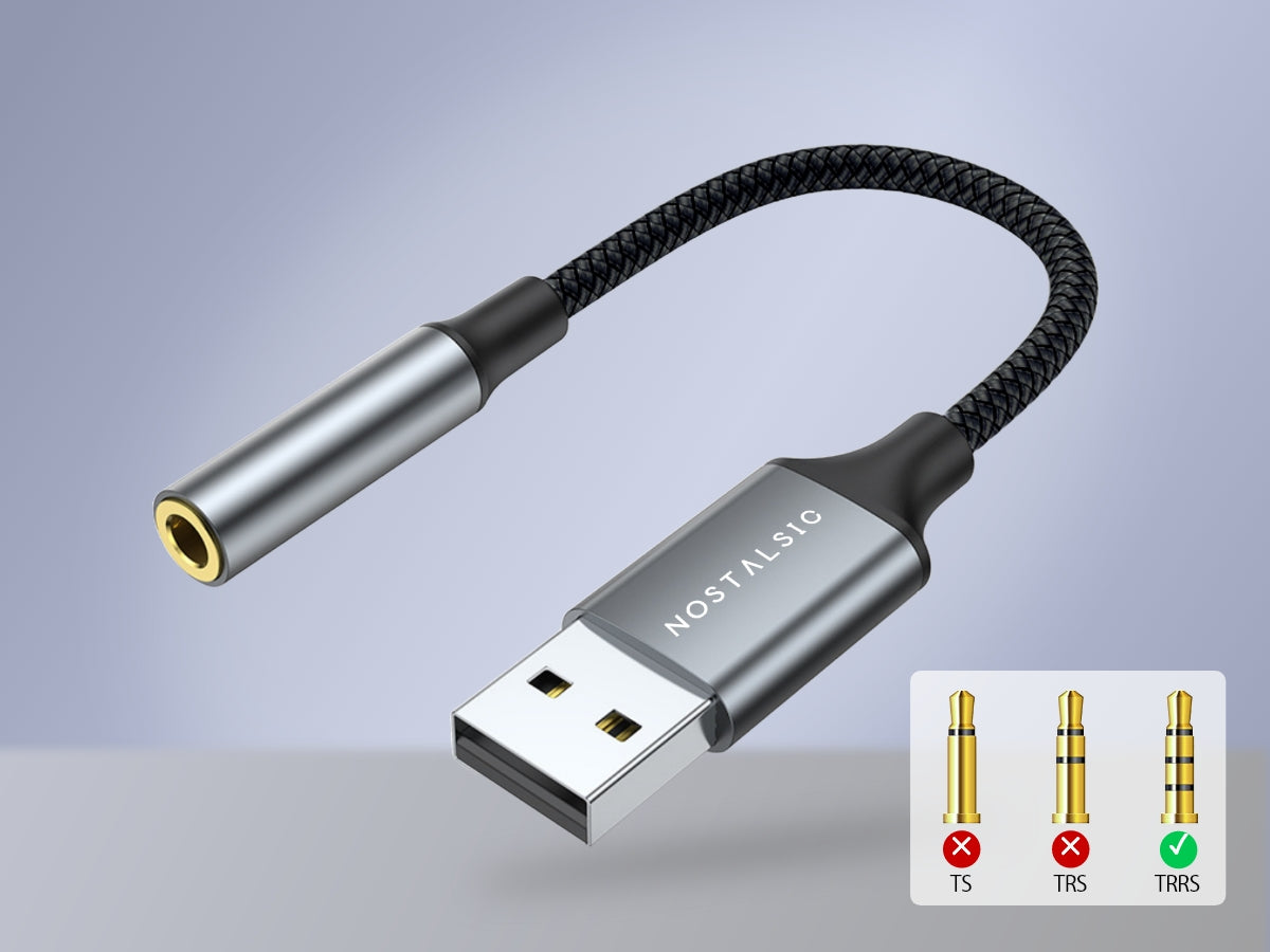 【USBオーディオ変換アダプター】USBポートを3.5mm TRRS(4極)ミニジャックに変換するオーディオアダプターです。ヘッドホンとマイクが一体化した3.5mmプラグに対応し、高音質なサウンドでビデオチャット、ボイスチャット、音楽鑑賞、ゲームを楽しむことができます。パソコンでの音声入力や出力に関する悩みを解決する、便利なアイテムです。※注意:本製品はUSBポートからオーディオへの変換を行うためのものです。ノイズ軽減を目的とする場合は別途ノイズフィルタをご用意ください。