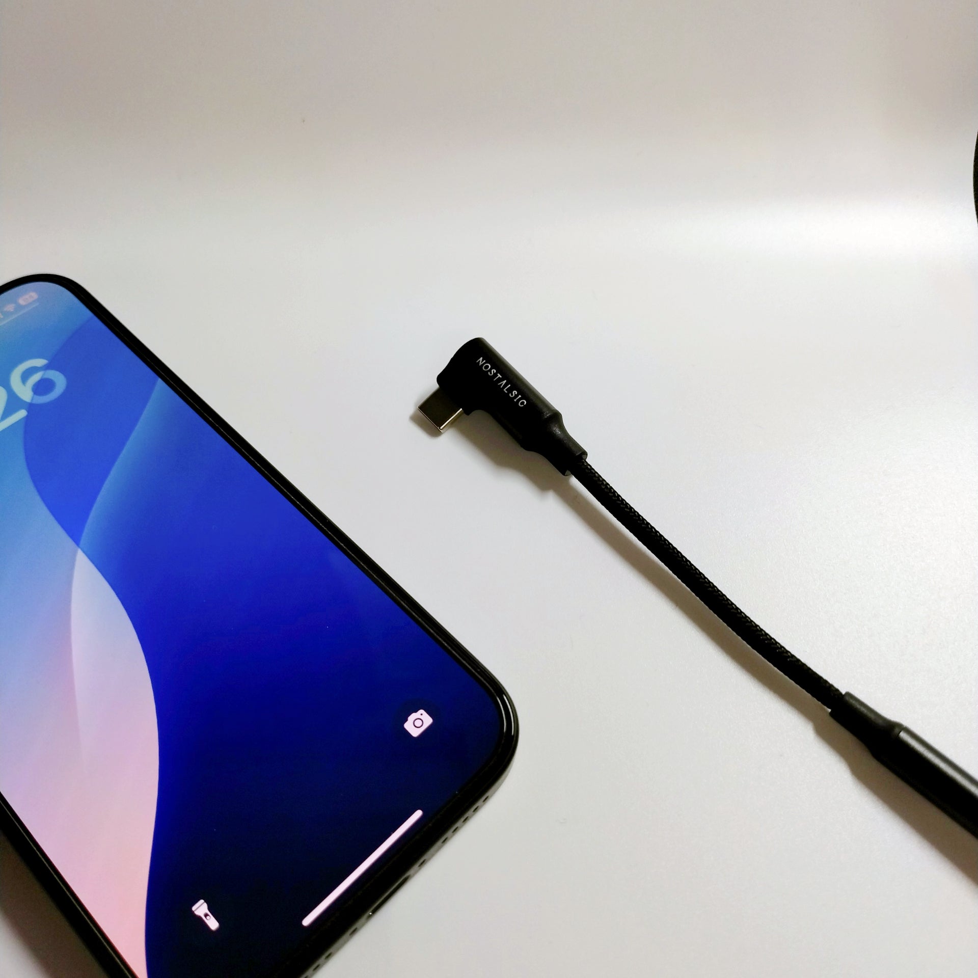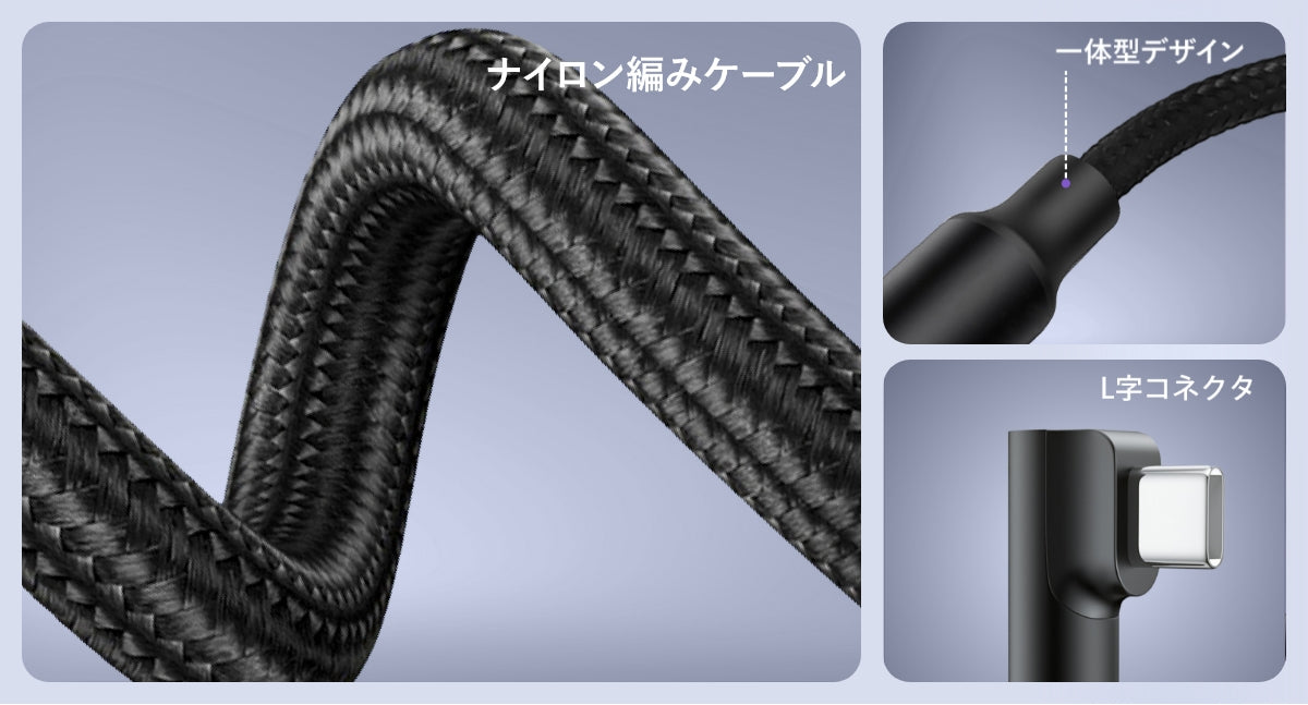 【L字型コネクタ採用】使いやすさを追求し、L字型コネクタを採用。スマホやタブレットを横向きで操作する際に、ケーブルが邪魔にならず、快適に使用できます。ゲームプレイ・動画視聴・車載オーディオ接続に最適で、ケーブルの断線リスクも軽減。さらに、端子は少し高さを持たせた設計で、スマホカバーを装着したままでもしっかり接続できます。